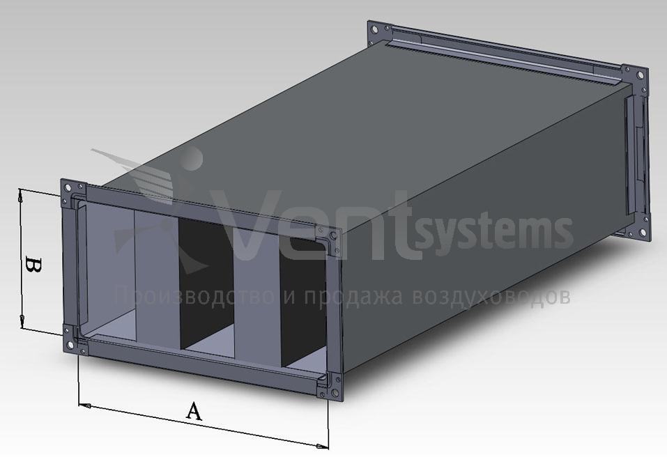 Прямоугольный стальной оцинкованный шумоглушитель с фланцами